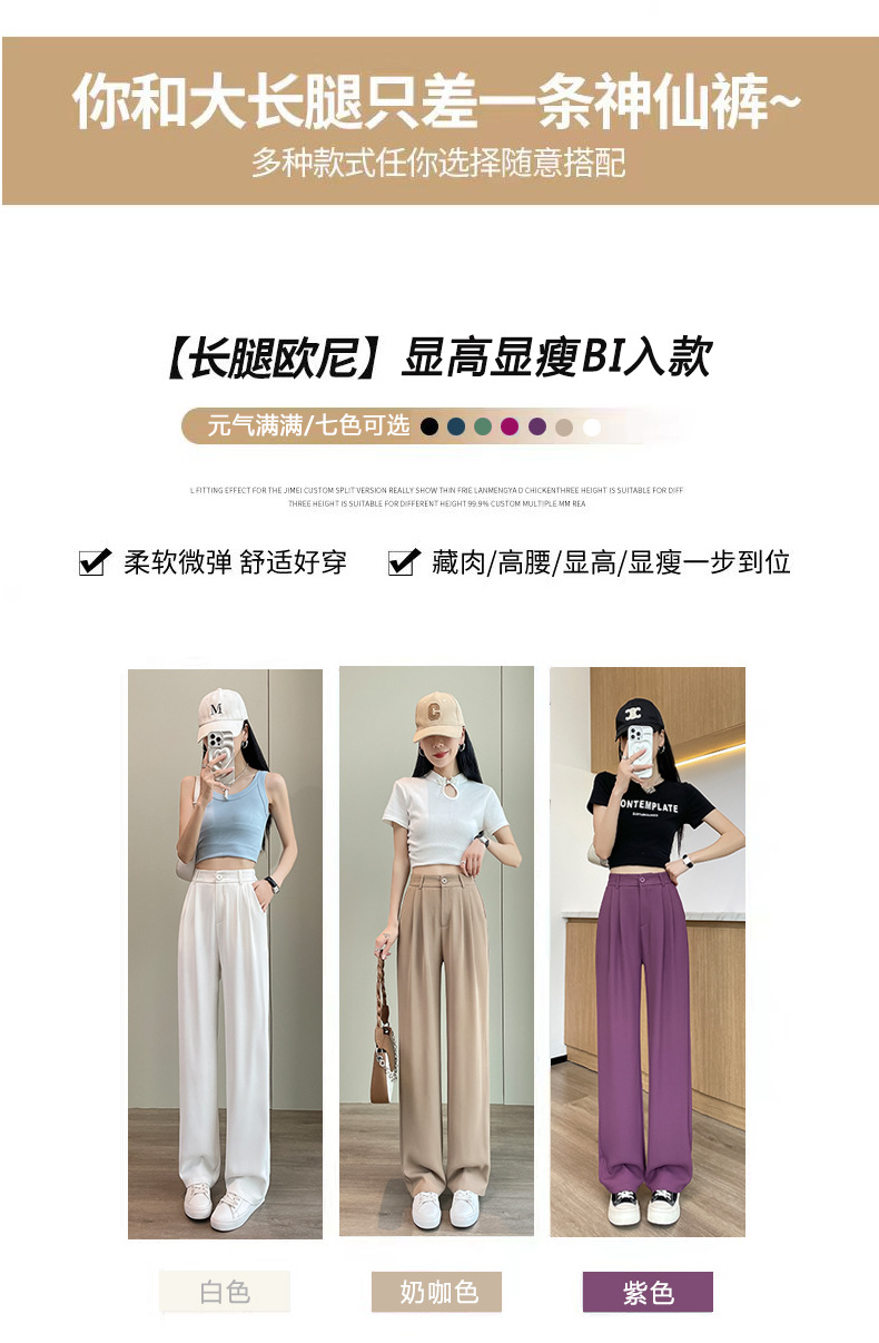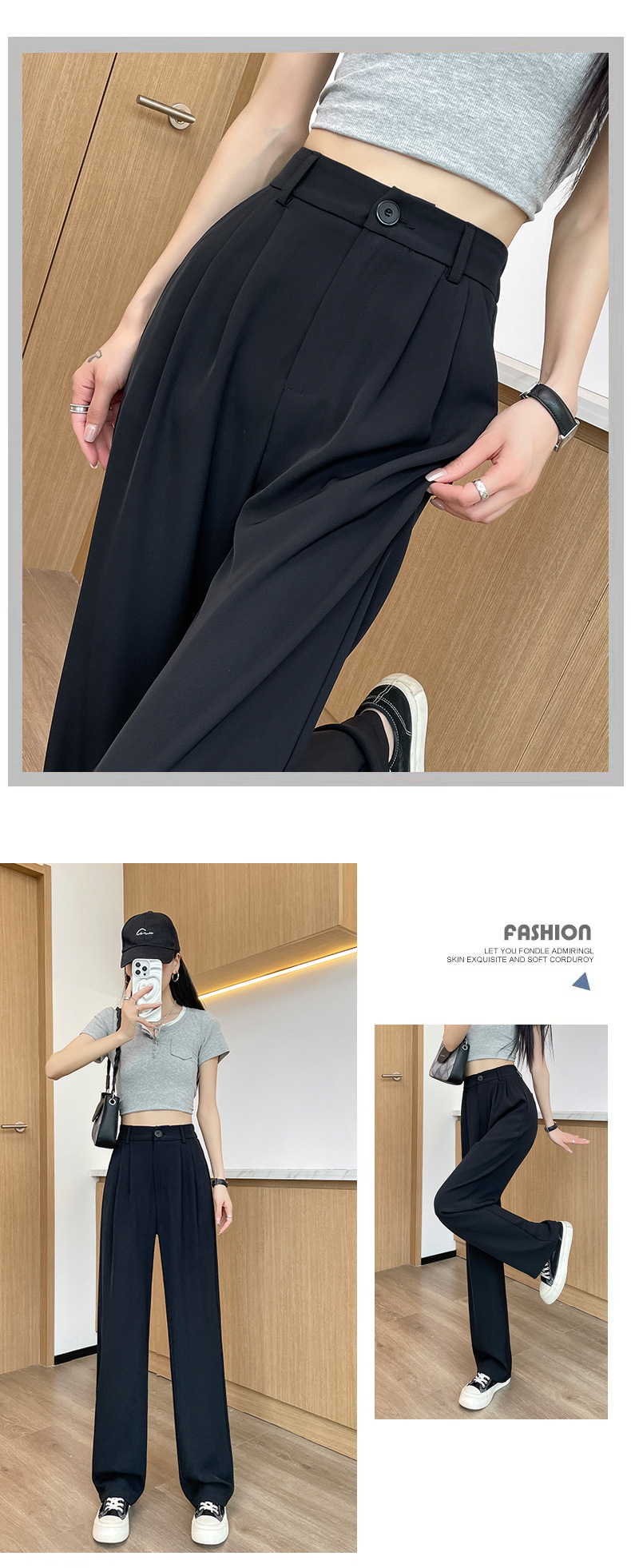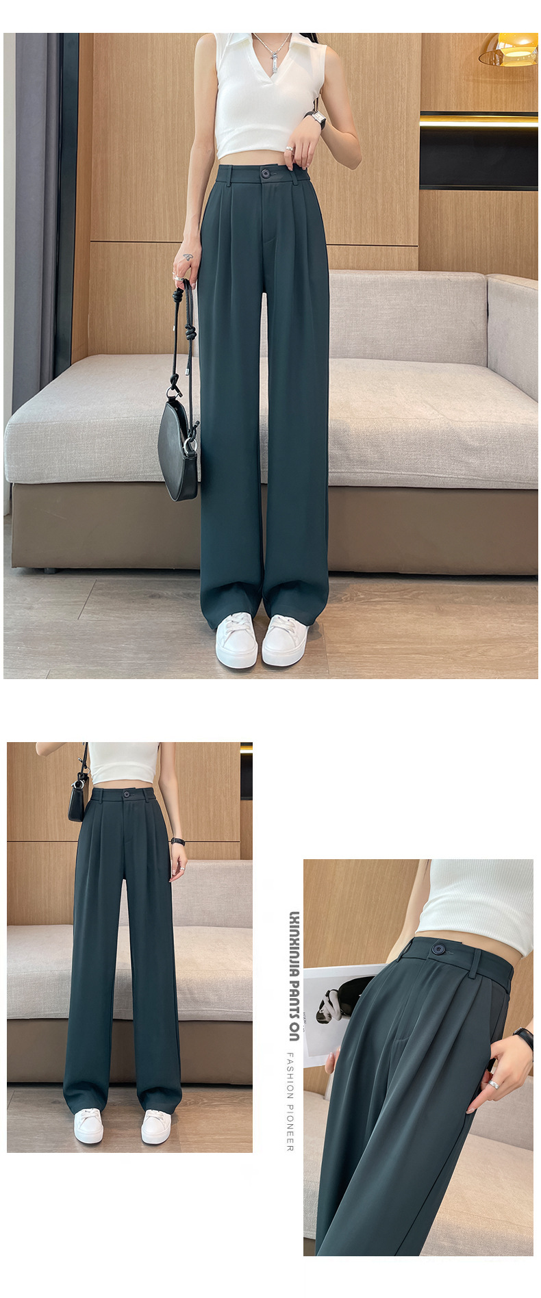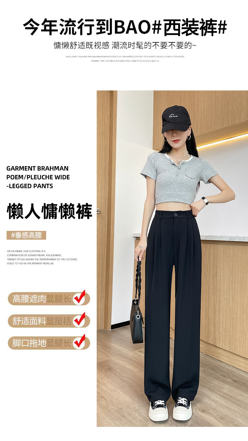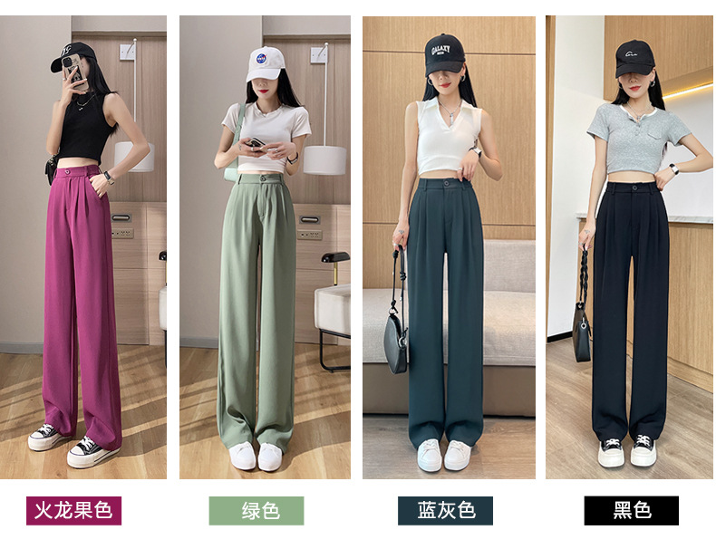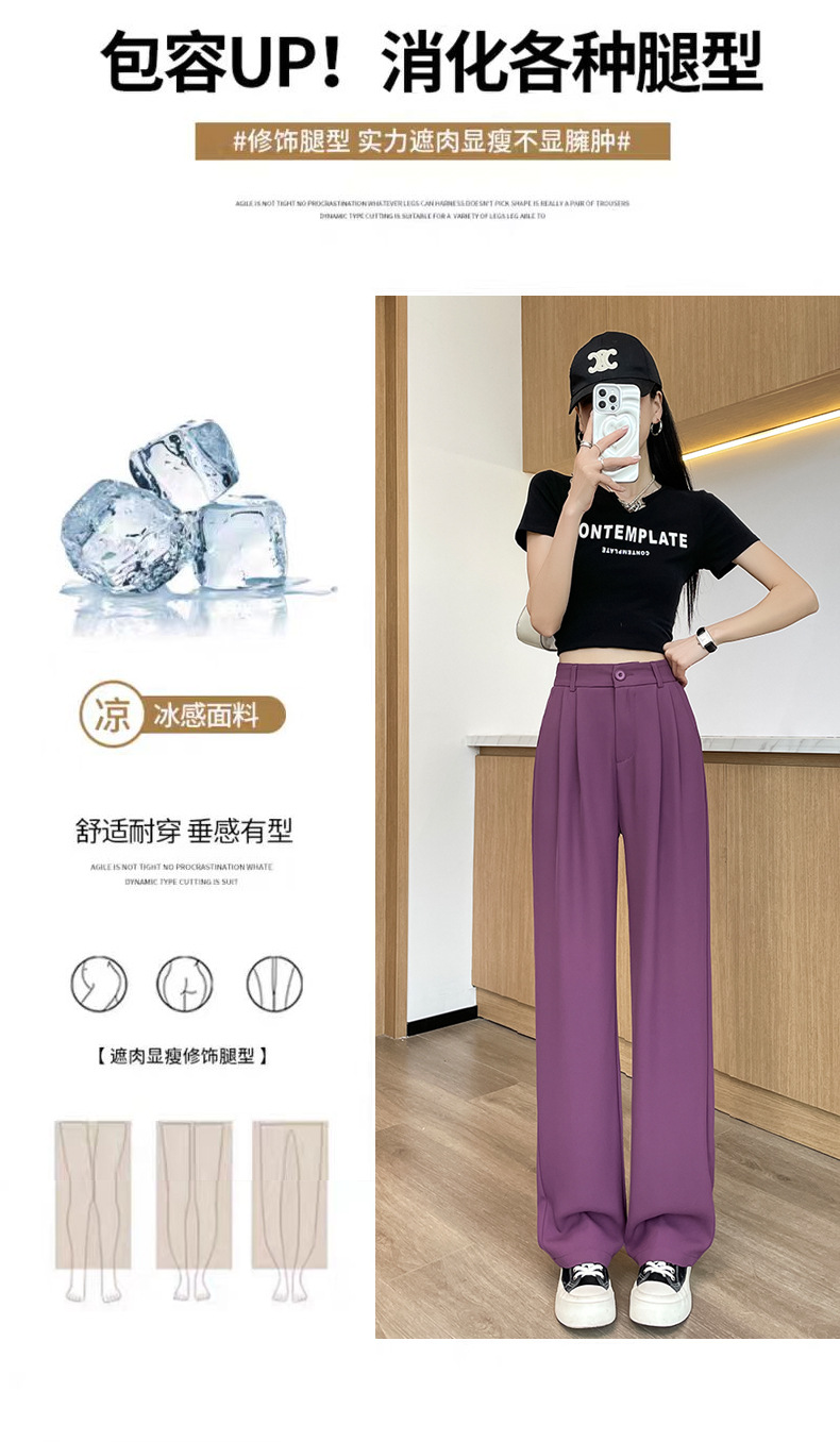 Narrow Version Of Chiffon Pendant Pants Wide Leg Pants Female Fat Mm Large Size High Waist Ice Silk Straight Leg Suit Pants Thin Summer